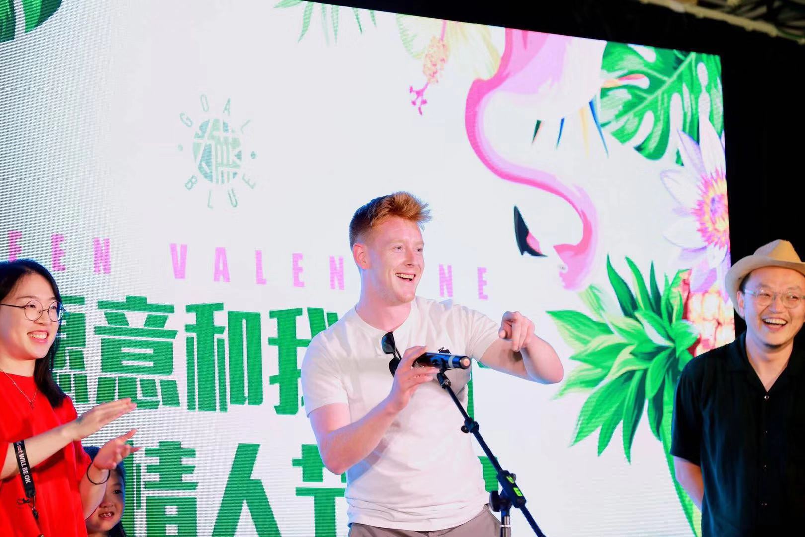 We prepared couple games for our guests and they In the game “listen to the song, guess the name” Mr. Mac fought with five other opponents and won for three times. And one prize was won by a foreign friend with the help of others.
